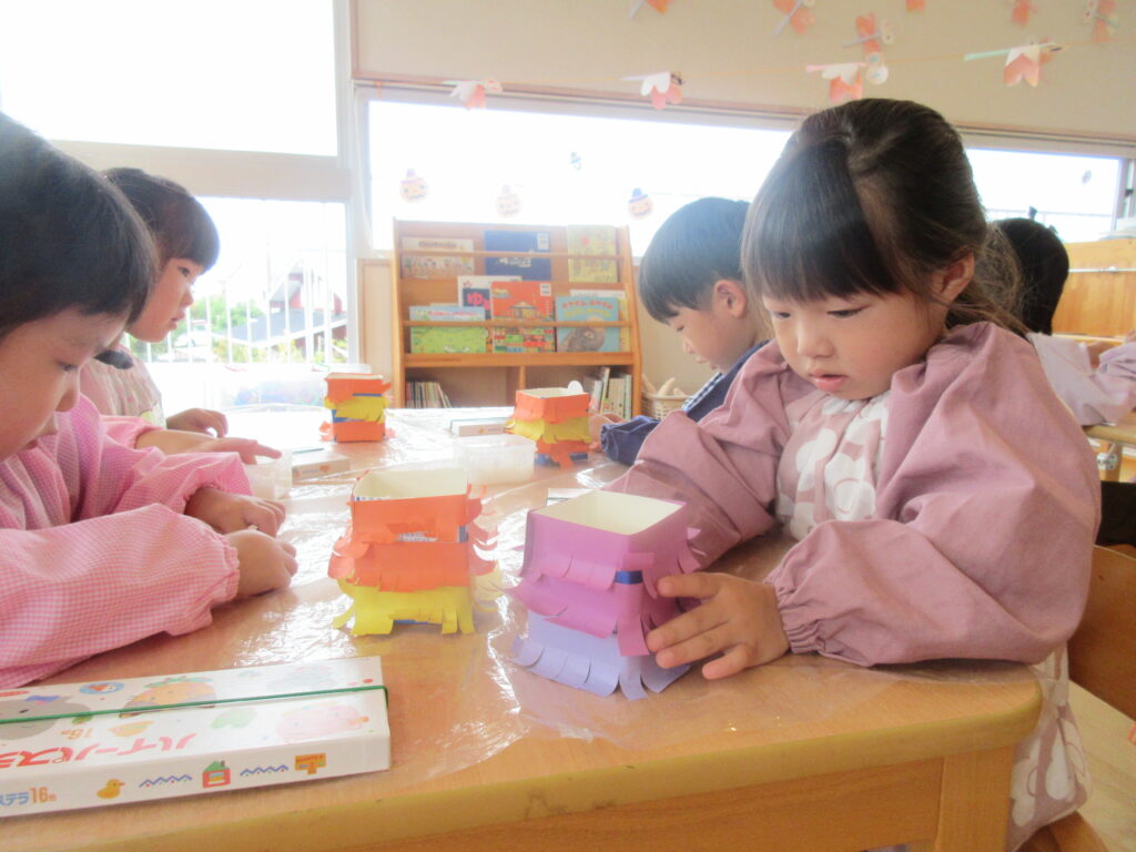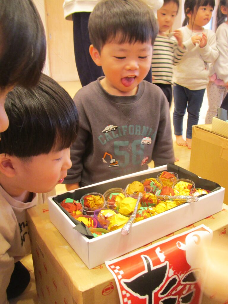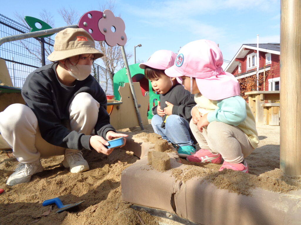 第二保育期の思い出(キッズキャンパス) 秋の自然は宝物がいっぱい! 園外保育のおにぎり、いつもありがとう! おにぎりタイムの後のまったりタイム♡ 山道のおさんぽ楽しいよ! トンネル内のライトアップ★ 急な坂道もへっちゃらだよー! ♪だーるまさんがこーろんだ! みんな仲良したんぽぽさん! 見ててね!自分で履けるよ! お砂場だいすき♡ どこまでも描けるね! みーつけた! なんだこりゃ!? いいのできたでしょ~! 見てみて~! おばけだよ~!! トリックオアトリート! ハロウィンパーティー♪ あの言葉…言えるかな!? ハロウィンパーティー楽しかったね! はじめての運動会! とびきりの笑顔! 幼稚園のお友達と一緒にがんばったよ! 指先までピーンとのびてるね! 高く舞い上がったよ! 真剣なまなざし! 白熱のリレーだったね! 金メダル嬉しいね! 最後の運動会!感動をありがとう! ダンス、ダンス、ばんびちゃん! ノリノリなぺんぎんちゃん! ひこうきさーん!おーい! パーティーのはじまり! いっぱい線を描いたよ! よーいドン!! スタンプ、ぽんぽんっ!! どこから色が出るの? 芸術の秋だね! かわいいどんぐりちゃん! 落ち葉に夢中! 先生、型抜き上手やね~! おいもほり! おっきなおいもだよ! 大収穫! おいもいっぱいで重た~い!お ちょっぴりドキドキ… おっきいなぁ!! もちつき、ぺったーん! 杵って重たいな… おもちつき楽しい! ばんびちゃんも元気にもちつきごっこ! いい匂~い! そりあそび、楽しかったね! みんなで雪だるま作ったよ! たこやき作り! 本格的でびっくり! いい匂いがするのかな?おいしそうだね! 廃材を使って楽器作り♪いい音だね♬ 体操教室はいつも元気いっぱい! はさみも上手に使えるよ! 可愛いサンタさんが大集合! サンタさーん!まってるよー! ピカピカ、きれいだな~! やったー!サンタさんが来てくれたね! サンタさんにもらったよ! みんなでカンパーイ! クリスマスパーティー! サンタさんからのプレゼントだぁ! サンタさーん、ありがとう!! ■2026年1月5日 5読み込み中... ■過去の投稿 ■過去の投稿 月を選択 2026年1月 (4) 2025年12月 (7) 2025年11月 (3) 2025年10月 (6) 2025年9月 (1) 2025年7月 (3) 2025年6月 (6) 2025年5月 (7) 2025年4月 (2) 2025年3月 (4) 2025年2月 (5) 2025年1月 (4) 2024年12月 (3) 2024年11月 (6) 2024年10月 (4) 2024年9月 (1) 2024年7月 (6) 2024年6月 (5) 2024年5月 (5) 2024年4月 (2) 2024年3月 (2) 2024年2月 (3) 2024年1月 (3) 2023年12月 (5) 2023年11月 (6) 2023年10月 (3) 2023年9月 (4) 2023年7月 (5) 2023年6月 (6) 2023年5月 (2) 2023年3月 (4) 2023年2月 (4) 2023年1月 (4) 2022年12月 (4) 2022年11月 (4) 2022年10月 (2) 2022年9月 (2) 2022年7月 (2) 2022年6月 (5) 2022年5月 (3) 2022年4月 (2) 2022年3月 (3) 2022年2月 (1) 2022年1月 (2) 2021年12月 (9) 2021年11月 (2) 2021年9月 (1) 2021年7月 (2) 2021年6月 (3) 2021年5月 (1) 2021年4月 (1) 2021年3月 (2) 2021年2月 (1) 2021年1月 (1) 2020年12月 (2) 2020年11月 (3) 2020年10月 (4) 2020年7月 (1) 2020年6月 (1) 2020年5月 (1) 2020年4月 (3) 2020年3月 (1) 2020年2月 (6) 2020年1月 (4) 2019年12月 (4) 2019年11月 (4) 2019年10月 (6) 2019年9月 (1) 2019年7月 (1) 2019年6月 (4) 2019年5月 (5) 2019年4月 (2) 2019年3月 (4) 2019年2月 (3) 2019年1月 (4) 2018年12月 (3) 2018年11月 (2) 2018年10月 (4) 2018年9月 (4) 2018年7月 (3) 2018年6月 (2) 2018年5月 (4) 2018年4月 (2) 2018年3月 (2) 2018年2月 (4) 2018年1月 (6) ▲ このページの先頭へ