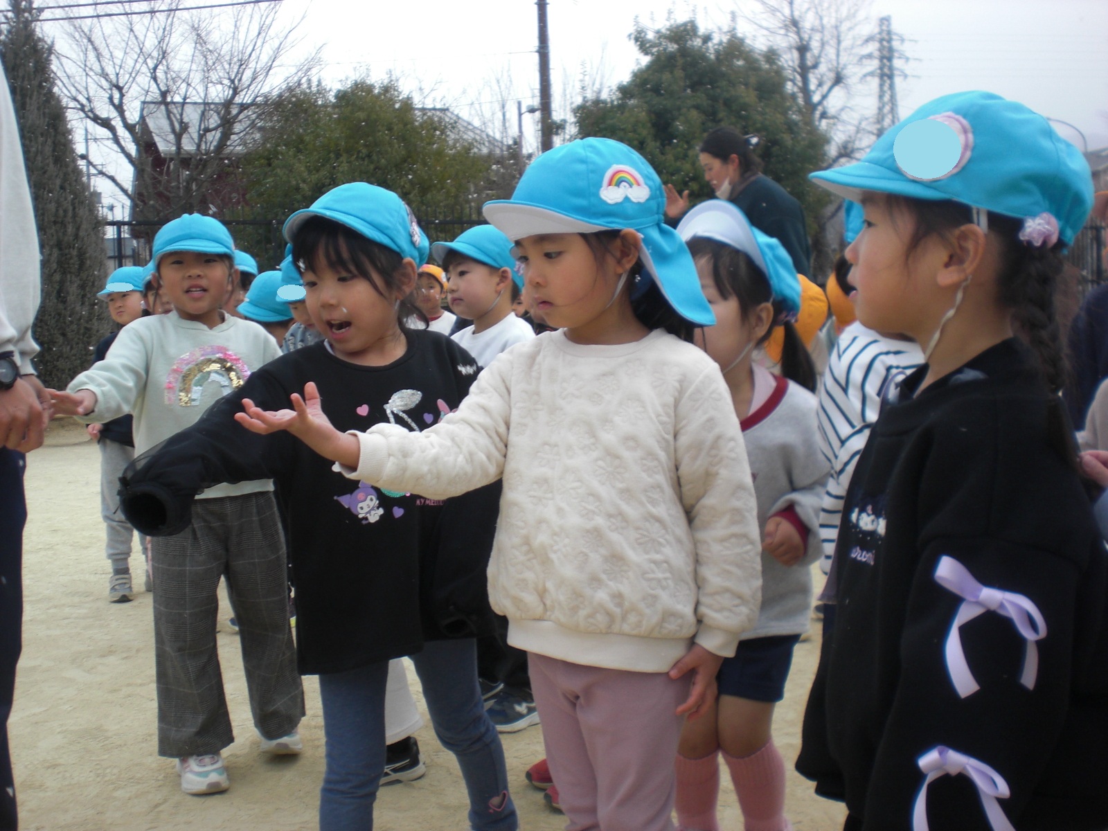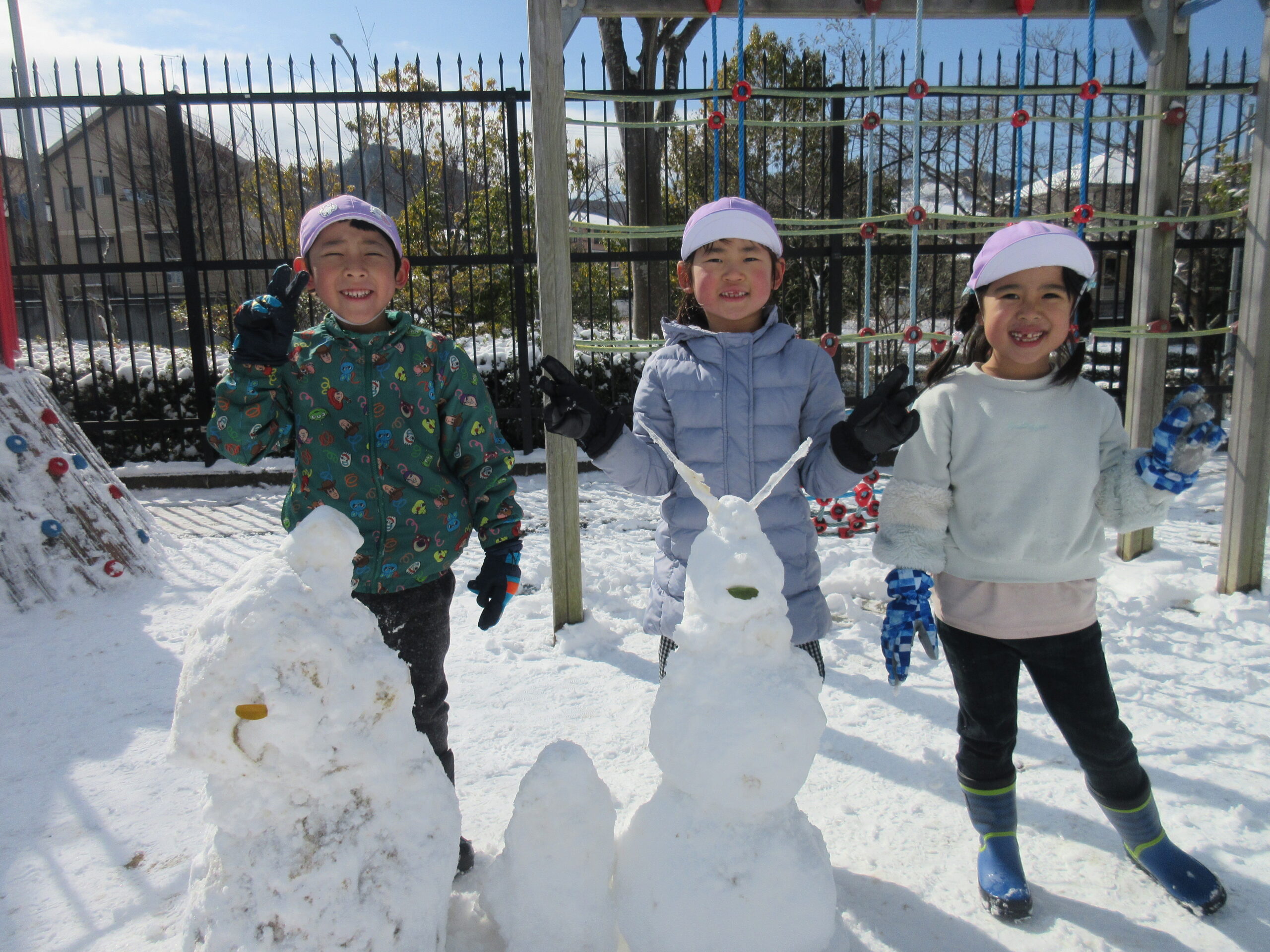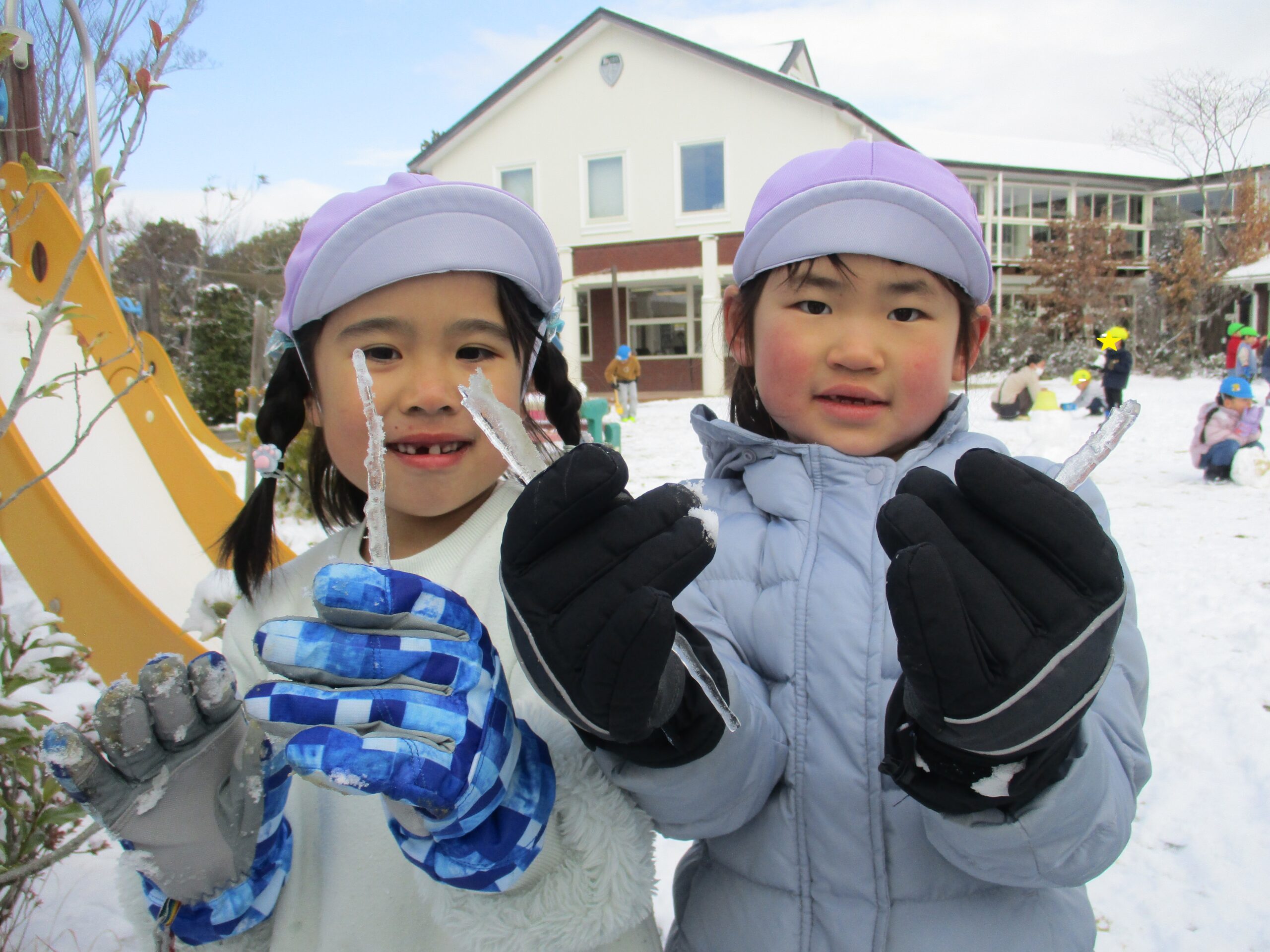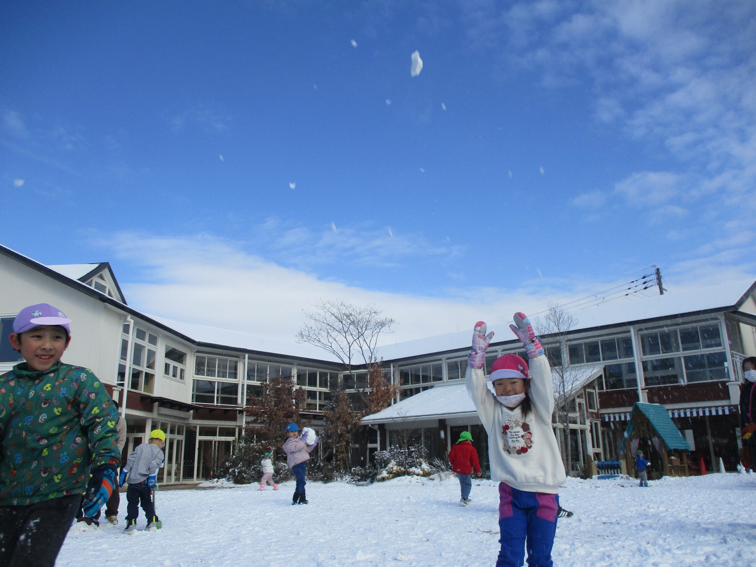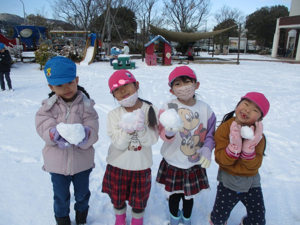 冬ならではの体験や遊びを楽しみました! 思わず身を縮めたくなるような寒い日が続きましたが、お子様たちは元気いっぱい! 雪かな!? 僕の服に雪が降ってきたよ! 先生の服に雪がついてる~☆ 服についた雪が結晶の形に見えるよ 窓にも結晶が付いていました 雪の結晶を折り紙で作ってみたよ! 雪だるま! 雪だ~っ!! 雪のお山を作るぞ! 雪を降らせてみたよ!! 焚火の火ってあたたかいね 冬と言えば焼き芋だね ほくほく美味しいな♪ 雪の下でも大きく育ってるね 収穫した大根をポトフにしていただきました! 雪の上にごろん 力を合わせて♪ 手のひらに雪をのせたら冷たいのかな!? 雪って手で握れるかな? みんなでクッキー作り 型抜きしたクッキーを暖炉のオーブンへ・・・ はやく焼けないかな~ サクサクしておいしい! 色々な所につららや氷を発見! バケツの水も氷になってる! つららを見つけたよ♪雪だるまの手にしよう! 完成☆ 見てみて~! 自分達で作った雪だるまと記念撮影☆ 身体を動かすと温かくなるね 冬ならではの遊びを楽しみ、様々な発見があった様です! ■2026年3月13日 1読み込み中... ■過去の投稿 ■過去の投稿 月を選択 2026年3月 (2) 2026年2月 (2) 2026年1月 (4) 2025年12月 (7) 2025年11月 (3) 2025年10月 (6) 2025年9月 (1) 2025年7月 (3) 2025年6月 (6) 2025年5月 (7) 2025年4月 (2) 2025年3月 (4) 2025年2月 (5) 2025年1月 (4) 2024年12月 (3) 2024年11月 (6) 2024年10月 (4) 2024年9月 (1) 2024年7月 (6) 2024年6月 (5) 2024年5月 (5) 2024年4月 (2) 2024年3月 (2) 2024年2月 (3) 2024年1月 (3) 2023年12月 (5) 2023年11月 (6) 2023年10月 (3) 2023年9月 (4) 2023年7月 (5) 2023年6月 (6) 2023年5月 (2) 2023年3月 (4) 2023年2月 (4) 2023年1月 (4) 2022年12月 (4) 2022年11月 (4) 2022年10月 (2) 2022年9月 (2) 2022年7月 (2) 2022年6月 (5) 2022年5月 (3) 2022年4月 (2) 2022年3月 (3) 2022年2月 (1) 2022年1月 (2) 2021年12月 (9) 2021年11月 (2) 2021年9月 (1) 2021年7月 (2) 2021年6月 (3) 2021年5月 (1) 2021年4月 (1) 2021年3月 (2) 2021年2月 (1) 2021年1月 (1) 2020年12月 (2) 2020年11月 (3) 2020年10月 (4) 2020年7月 (1) 2020年6月 (1) 2020年5月 (1) 2020年4月 (3) 2020年3月 (1) 2020年2月 (6) 2020年1月 (4) 2019年12月 (4) 2019年11月 (4) 2019年10月 (6) 2019年9月 (1) 2019年7月 (1) 2019年6月 (4) 2019年5月 (5) 2019年4月 (2) 2019年3月 (4) 2019年2月 (3) 2019年1月 (4) 2018年12月 (3) 2018年11月 (2) 2018年10月 (4) 2018年9月 (4) 2018年7月 (3) 2018年6月 (2) 2018年5月 (4) 2018年4月 (2) 2018年3月 (2) 2018年2月 (4) 2018年1月 (6) ▲ このページの先頭へ