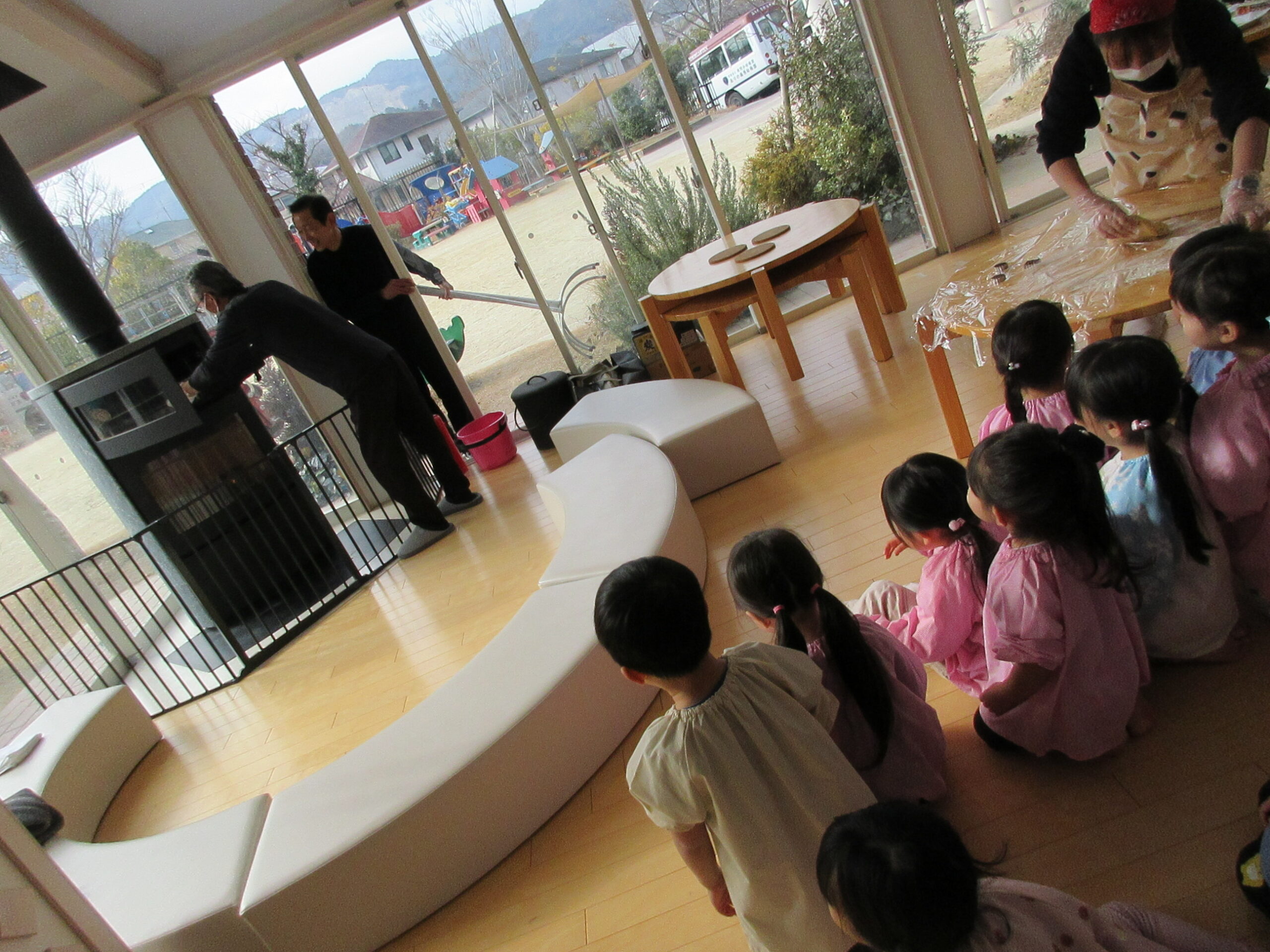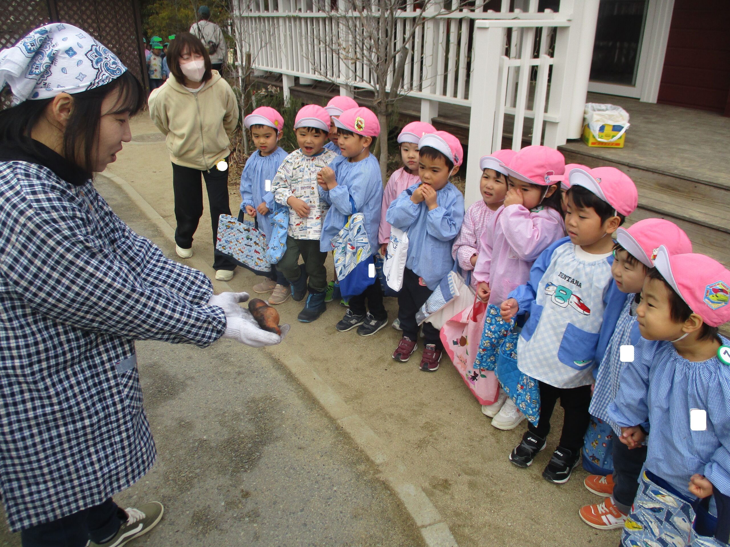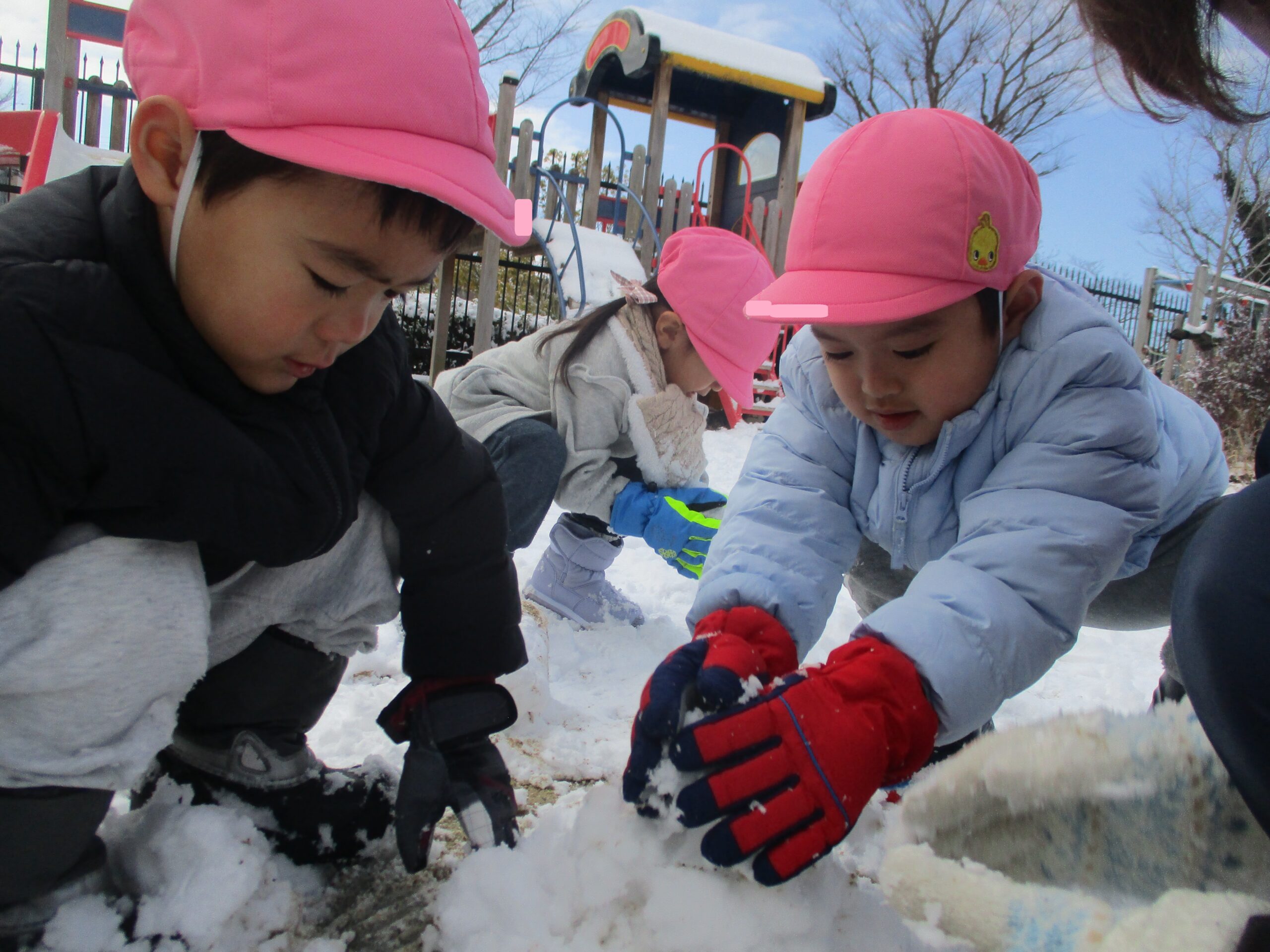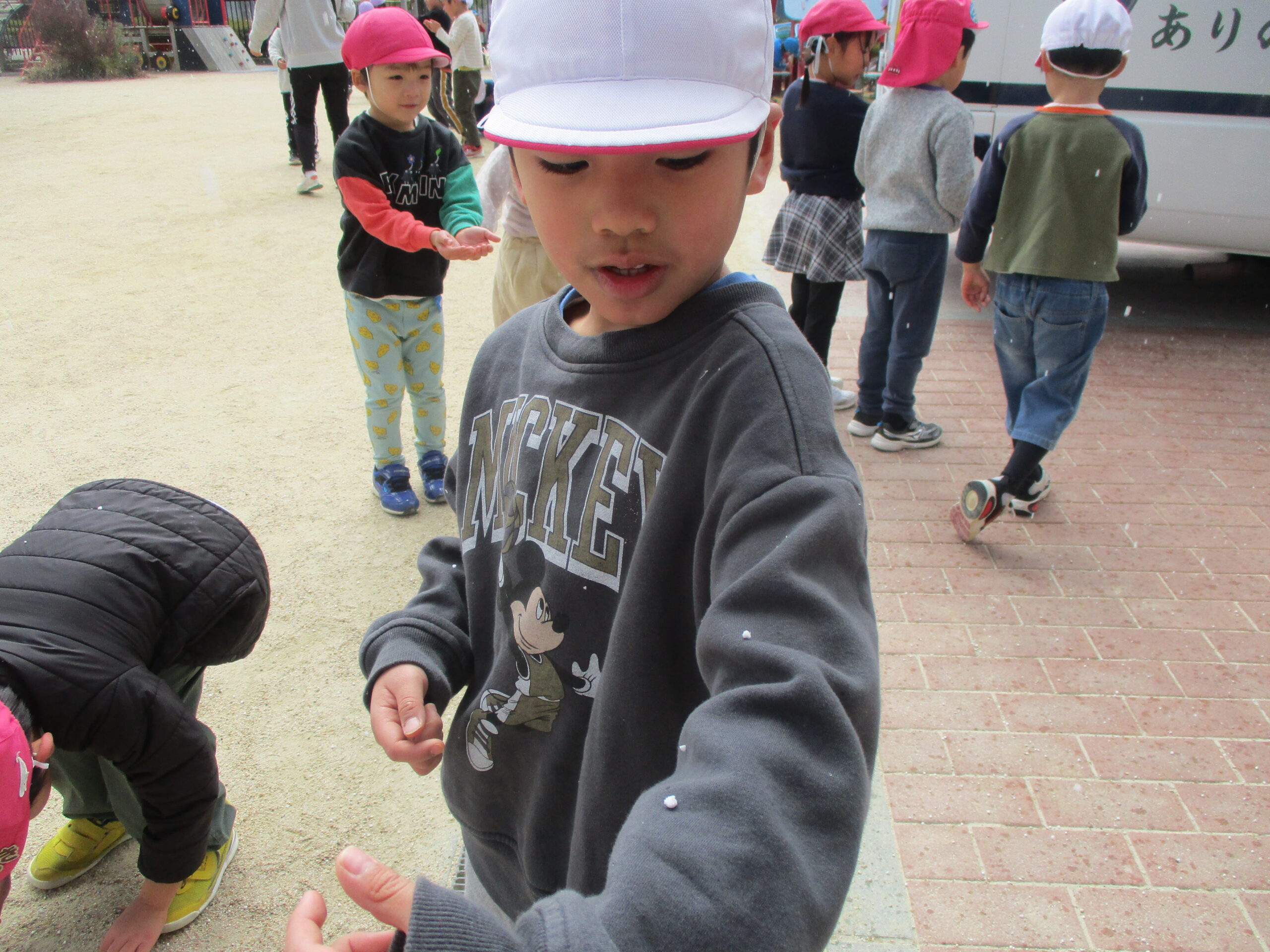 冬ならではの体験や遊びを楽しみました! 思わず身を縮めたくなるような寒い日が続きましたが、お子様たちは元気いっぱい! 雪かな!? 僕の服に雪が降ってきたよ! 先生の服に雪がついてる~☆ 服についた雪が結晶の形に見えるよ 窓にも結晶が付いていました 雪の結晶を折り紙で作ってみたよ! 雪だるま! 雪だ~っ!! 雪のお山を作るぞ! 雪を降らせてみたよ!! 焚火の火ってあたたかいね 冬と言えば焼き芋だね ほくほく美味しいな♪ 雪の下でも大きく育ってるね 収穫した大根をポトフにしていただきました! 雪の上にごろん 力を合わせて♪ 手のひらに雪をのせたら冷たいのかな!? 雪って手で握れるかな? みんなでクッキー作り 型抜きしたクッキーを暖炉のオーブンへ・・・ はやく焼けないかな~ サクサクしておいしい! 色々な所につららや氷を発見! バケツの水も氷になってる! つららを見つけたよ♪雪だるまの手にしよう! 完成☆ 見てみて~! 自分達で作った雪だるまと記念撮影☆ 身体を動かすと温かくなるね 冬ならではの遊びを楽しみ、様々な発見があった様です! ■2026年3月13日 1読み込み中... ■過去の投稿 ■過去の投稿 月を選択 2026年3月 (2) 2026年2月 (2) 2026年1月 (4) 2025年12月 (7) 2025年11月 (3) 2025年10月 (6) 2025年9月 (1) 2025年7月 (3) 2025年6月 (6) 2025年5月 (7) 2025年4月 (2) 2025年3月 (4) 2025年2月 (5) 2025年1月 (4) 2024年12月 (3) 2024年11月 (6) 2024年10月 (4) 2024年9月 (1) 2024年7月 (6) 2024年6月 (5) 2024年5月 (5) 2024年4月 (2) 2024年3月 (2) 2024年2月 (3) 2024年1月 (3) 2023年12月 (5) 2023年11月 (6) 2023年10月 (3) 2023年9月 (4) 2023年7月 (5) 2023年6月 (6) 2023年5月 (2) 2023年3月 (4) 2023年2月 (4) 2023年1月 (4) 2022年12月 (4) 2022年11月 (4) 2022年10月 (2) 2022年9月 (2) 2022年7月 (2) 2022年6月 (5) 2022年5月 (3) 2022年4月 (2) 2022年3月 (3) 2022年2月 (1) 2022年1月 (2) 2021年12月 (9) 2021年11月 (2) 2021年9月 (1) 2021年7月 (2) 2021年6月 (3) 2021年5月 (1) 2021年4月 (1) 2021年3月 (2) 2021年2月 (1) 2021年1月 (1) 2020年12月 (2) 2020年11月 (3) 2020年10月 (4) 2020年7月 (1) 2020年6月 (1) 2020年5月 (1) 2020年4月 (3) 2020年3月 (1) 2020年2月 (6) 2020年1月 (4) 2019年12月 (4) 2019年11月 (4) 2019年10月 (6) 2019年9月 (1) 2019年7月 (1) 2019年6月 (4) 2019年5月 (5) 2019年4月 (2) 2019年3月 (4) 2019年2月 (3) 2019年1月 (4) 2018年12月 (3) 2018年11月 (2) 2018年10月 (4) 2018年9月 (4) 2018年7月 (3) 2018年6月 (2) 2018年5月 (4) 2018年4月 (2) 2018年3月 (2) 2018年2月 (4) 2018年1月 (6) ▲ このページの先頭へ