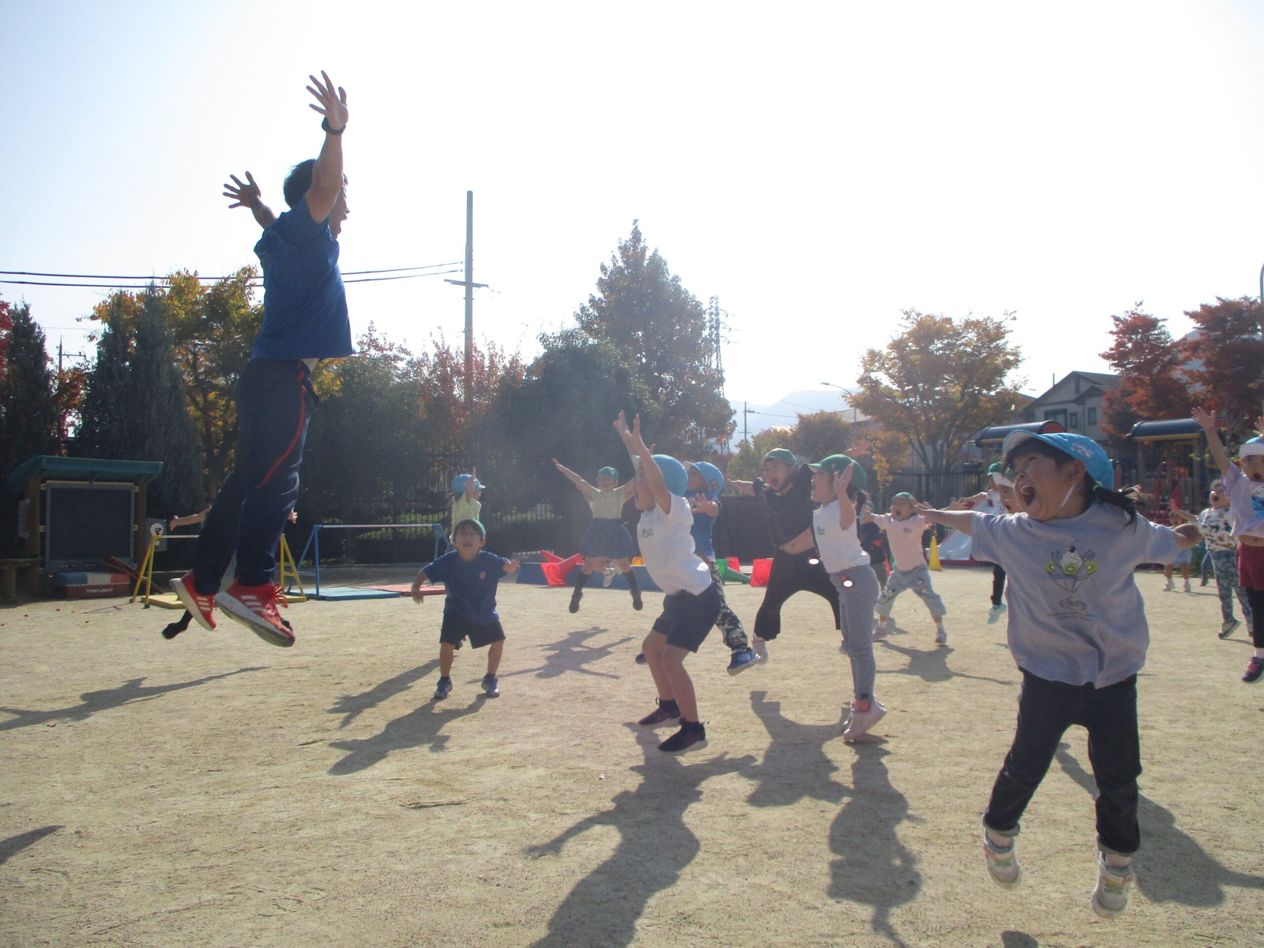 年中組 園生活の様子 体力がグンッと付いたお子様達!元気一杯に身体を動かしています♪ コーナー遊びで、季節の製作「蛇腹折りのミノムシ作り」で秋を感じています♪ キッズキャンパスの園庭で遊んだよ! ・・読書の秋・・ 「ものぐさトミー」おもしろい~♪ ♪はないちもんめ♪ 秋の葉っぱの写し絵をしたよ!「わぁ、葉っぱの模様が浮かんできた~」 運動会で万国旗を製作したことをきっかけに、世界の国旗に興味津々のお子様達「フランス、イタリア、日本の他にもたくさんあるね!」 鬼ごっこだ~、待て待て~ 「おに役と逃げる役を決めるよ、じゃんけんぽんっ!」 走って逃げるよ~ これから少しずつ寒くなる冬に向けて、元気な身体作りをしていきたいと思います! ■2025年11月17日 2読み込み中... ■過去の投稿 ■過去の投稿 月を選択 2026年3月 (1) 2026年2月 (2) 2026年1月 (4) 2025年12月 (7) 2025年11月 (3) 2025年10月 (6) 2025年9月 (1) 2025年7月 (3) 2025年6月 (6) 2025年5月 (7) 2025年4月 (2) 2025年3月 (4) 2025年2月 (5) 2025年1月 (4) 2024年12月 (3) 2024年11月 (6) 2024年10月 (4) 2024年9月 (1) 2024年7月 (6) 2024年6月 (5) 2024年5月 (5) 2024年4月 (2) 2024年3月 (2) 2024年2月 (3) 2024年1月 (3) 2023年12月 (5) 2023年11月 (6) 2023年10月 (3) 2023年9月 (4) 2023年7月 (5) 2023年6月 (6) 2023年5月 (2) 2023年3月 (4) 2023年2月 (4) 2023年1月 (4) 2022年12月 (4) 2022年11月 (4) 2022年10月 (2) 2022年9月 (2) 2022年7月 (2) 2022年6月 (5) 2022年5月 (3) 2022年4月 (2) 2022年3月 (3) 2022年2月 (1) 2022年1月 (2) 2021年12月 (9) 2021年11月 (2) 2021年9月 (1) 2021年7月 (2) 2021年6月 (3) 2021年5月 (1) 2021年4月 (1) 2021年3月 (2) 2021年2月 (1) 2021年1月 (1) 2020年12月 (2) 2020年11月 (3) 2020年10月 (4) 2020年7月 (1) 2020年6月 (1) 2020年5月 (1) 2020年4月 (3) 2020年3月 (1) 2020年2月 (6) 2020年1月 (4) 2019年12月 (4) 2019年11月 (4) 2019年10月 (6) 2019年9月 (1) 2019年7月 (1) 2019年6月 (4) 2019年5月 (5) 2019年4月 (2) 2019年3月 (4) 2019年2月 (3) 2019年1月 (4) 2018年12月 (3) 2018年11月 (2) 2018年10月 (4) 2018年9月 (4) 2018年7月 (3) 2018年6月 (2) 2018年5月 (4) 2018年4月 (2) 2018年3月 (2) 2018年2月 (4) 2018年1月 (6) ▲ このページの先頭へ